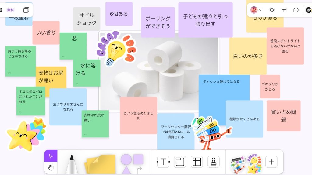 まずは考えずに感じたことを付箋に書いてみよう!というトレーニングから始め、最後にアートを見ながら感じたことを自由に出してもらいました。