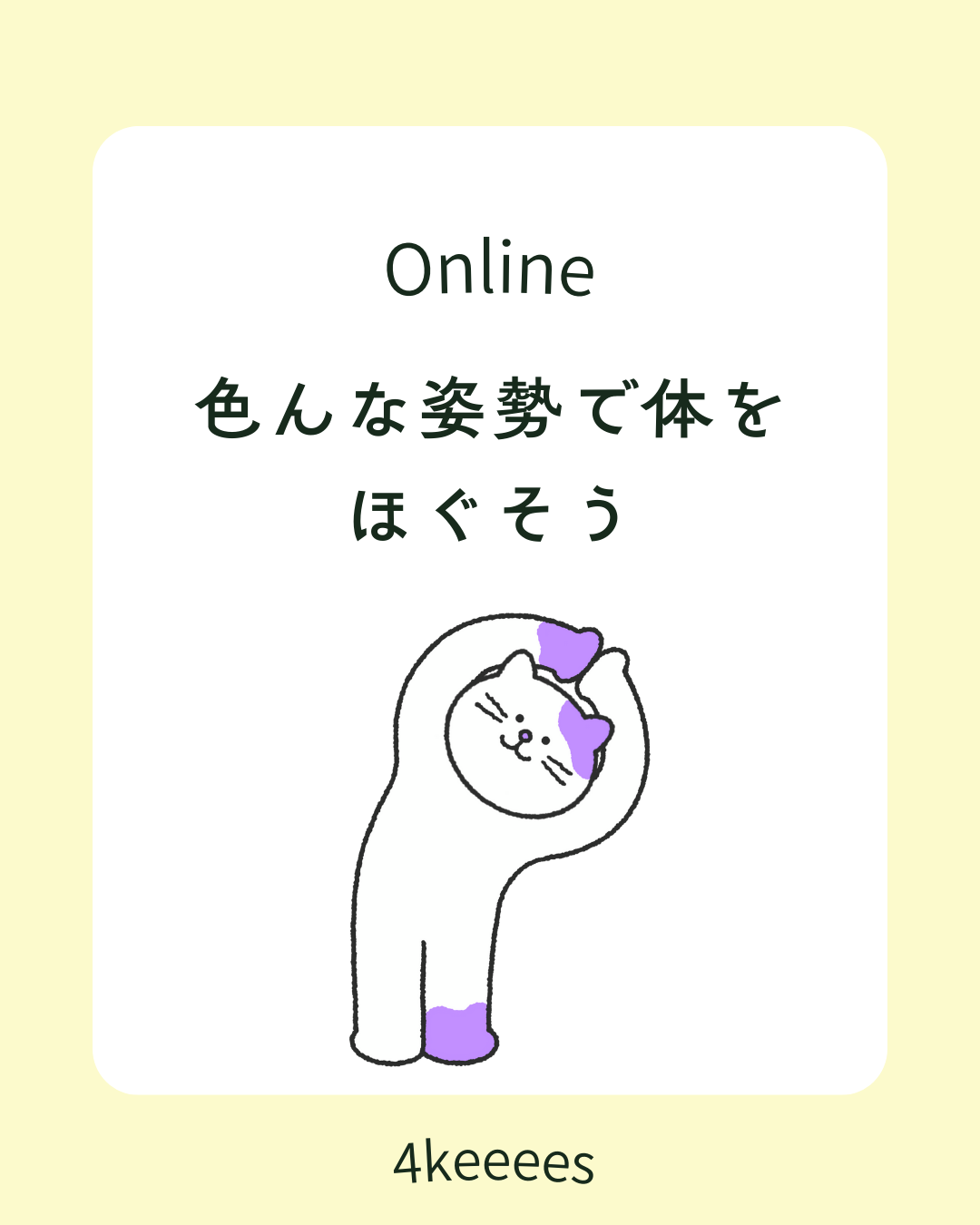 オンラインワークショップ「色んな姿勢で体をほぐそう」を 開催しました。「あ、痛い」「いや、痛気持ちいい?」などとお互いに声をかけあいながら体をほぐし動く時間が心地よく、心身がゆるみました。冷房で冷えた体が外に一歩出ると酷暑にさらされるこの時期、自分の体にいつも以上に優しく関わりたいものです。普段は目を向けない体の部分に目を向けて、お!こんなところが硬いのだな?と感じるだけで、体は自分の声を聞いてもらった!と満足するように思います。日々、聞いているようで聞いてあげられない身近な人の声、自分の体の声、できる時に無理なくで良いので、ぜひ耳を傾けてみたいですね。(ゆり)